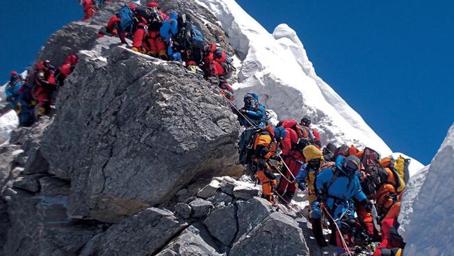 The photo has launched a thousand articles (a thousand and one now), mostly about how the mountain has become just another bucket list item for wealthy adventurers.