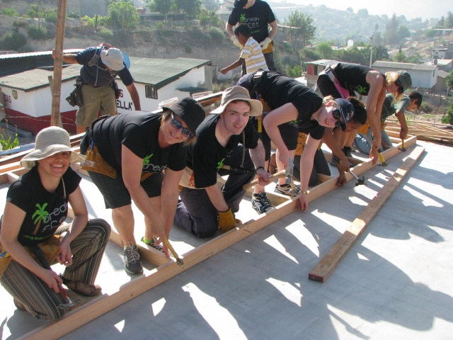 Some on our team hadn't really ever hammered a nail before, but pretty soon we were all expert in using a nail gun, hammering, and painting.